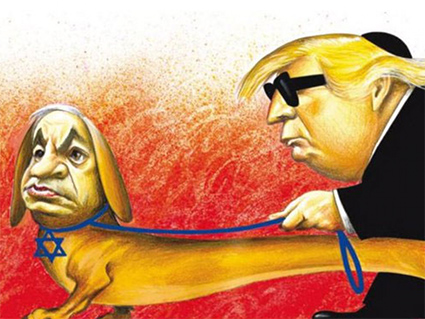 En el dibujo que se publicó aparecía Benjamin Netanyahu representado como un perro guía, con un collar que cuelga de una estrella de David, señalando el camino a Donald Trump, que lleva gafas oscuras y una kipá en la cebeza.
